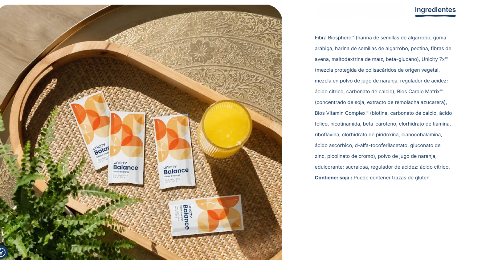 Balance de Unicity contiene una matriz de fibra patentada que está diseñada para ayudar a aliviar parte del impacto que el exceso de carbohidratos y colesterol en la dieta puede tener en el cuerpo, así como para ayudar a controlar el apetito.